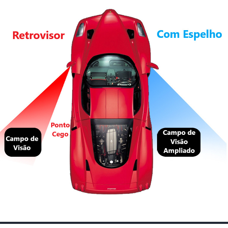 Espelho  permite que você veja claramente quaisquer pontos cegos sem interrupções, fazendo com que você fique seguro na estrada, seja avançandoinvertendoestacionandoultrapassando, trocando de faixa e assim por diante!